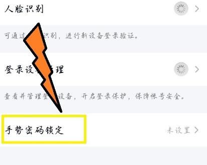 4、在帐号安全的主界面中,我们选择进入手势密码锁定选项;