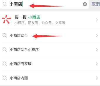 2、点击上方搜索栏,搜索小商店助手,点击进入;
