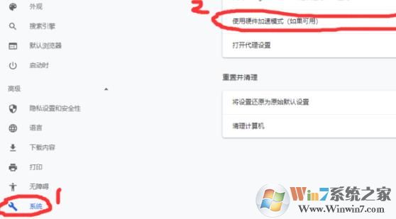 4、点击左侧的系统既可看到“使用硬件加速模式”的开关,关闭即可。