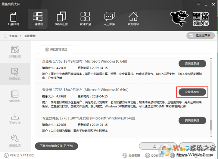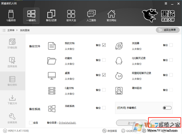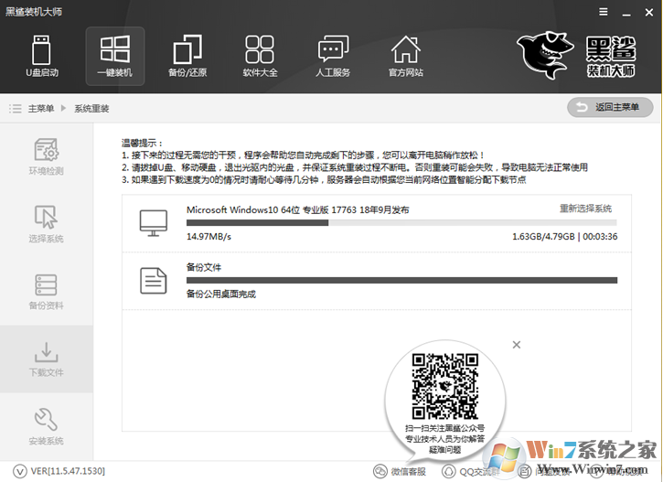 4、选择好需要安装的系统和备份的文件后,黑鲨装机大师就会下载对应的系统文件,并进行文件的备份;