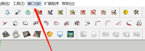 1、打开SketchUp草图大师,再打开需要添加水印的文件,点击上方的【窗口】;