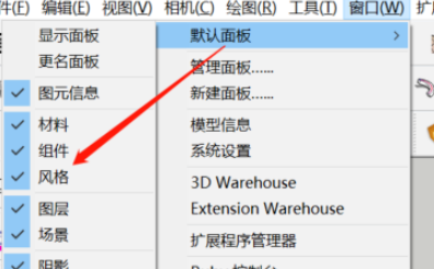 2、点击选择【默认面板】—【显示风格面板】;