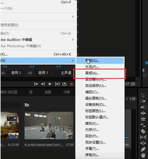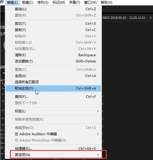 1、打开Pr软件,新建项目,然后选择上方菜单栏,点击【编辑】—【首选项】—【音频】;