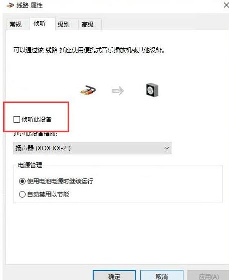 4、查看是否勾选了【侦听此设备】,如果发现有勾选此项,将它取消即可。