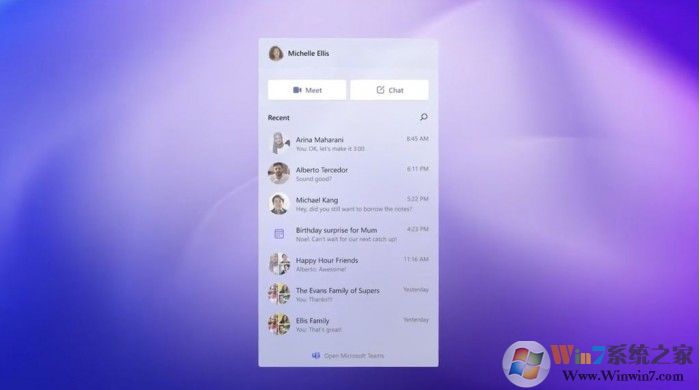 Panay重回画面并称Teams将直接被集成到Windows中。Microsoft Teams 也与 Windows 实现了更紧密的集成。任务栏上的Teams图标会弹出聊天列表,这使得连接速度变得更快。演示视频时间。画面弹出一个聊天列表,然后是聊天窗口,然后是视频通话。很显然,大家看到的是一大堆聊天和视频通话。