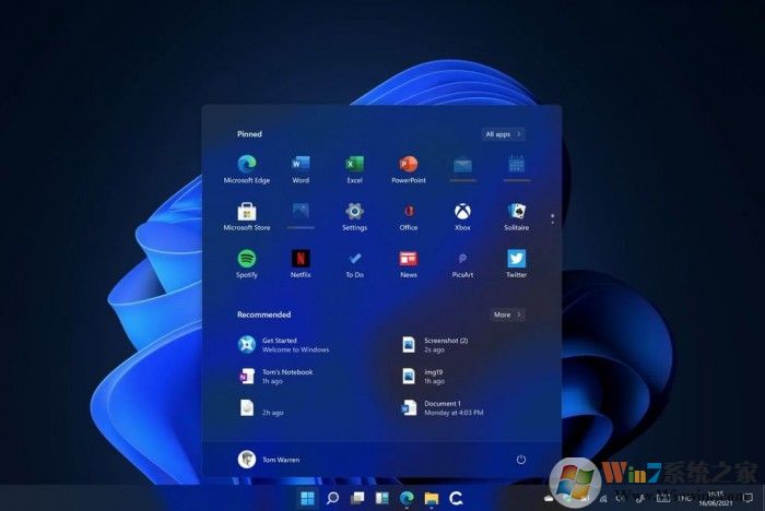 新版开始菜单只是当前 Windows 10 的简化版本,没有动态磁贴。它包括固定的应用程序、最近使用的文件、以及快速关闭或重新启动Windows 11设备的能力。它确实比今天Windows 10中存在的东西简化了很多。