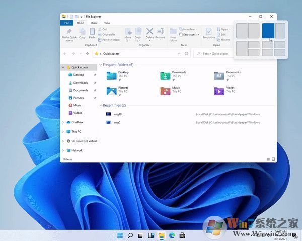 Windows 11 中引入了全新的多任务布局:Snap Layouts。如果你需要处理一些不在平铺布局中的东西则可以保存在Snap Group中。有趣的是,自定义布局支持合适的平铺功能了,看起来还有许多不同的选择。你可以用自己定制的壁纸制作多个桌面。断开显示器连接的时候,窗口也会同步调节大小。重新连接显示器后,又会还原至之前的状态。