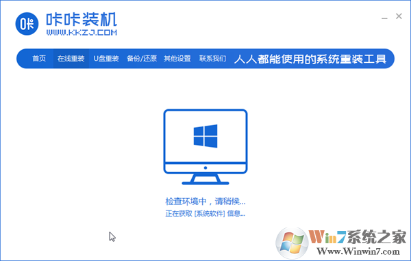 3,关闭杀毒软件,打开咔咔装机,咔咔装机会先对电脑环境进行检查。