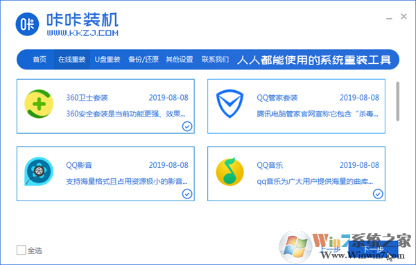 5,然后进入装机软件选择界面,这里可以挑选一些适用的软件一块下载到系统内。
