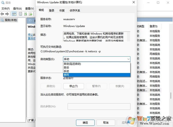 3、然后将启动类型更改为“禁用”,再点击一下“停止”即可。