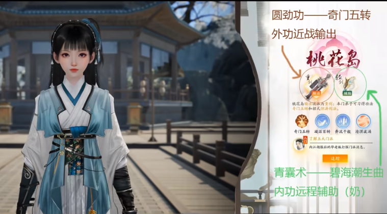 黄药师创立的桃花岛,位于东海之滨,是一处美丽的仙境。黄药师因桃花岛门派武学精湛,而誉满江湖。桃花岛武学以其高灵活度、高爆发力和独特的控制能力著称。玩家选择这个门派,将学到其中的“弹指神通”与“玉女剑法”,两种卓越的武学。先进的治疗技巧使得桃花岛门徒成为团队中的宝贵支援者,同时还能依靠强大的输出能力对敌人构成威胁。桃花岛武学的独特魅力使得选择此门派的玩家在江湖中如鱼得水。