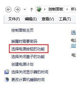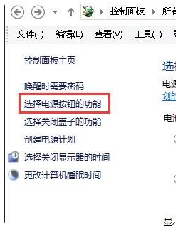 3、在电源选项窗口左侧,找到“选择电源按钮的功能”单机左键;