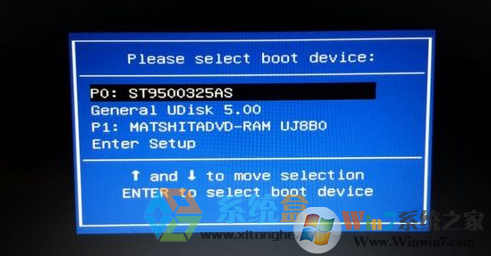 4、开机后还是按ESC键,这时候你会发现出现启动菜单并且识别了U盘启动盘(确保U盘启动盘已经插入USB口);(U盘启动盘以你的U盘型号命名)www.xitonghe.com 系统盒编辑