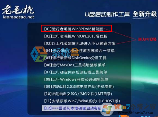 5、然后就可以进入U盘启动盘菜界面了,我们进入WIN8PE就可以重装win7系统了。