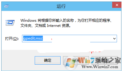 2、打开“运行”对话框(Windows10打开“运行”窗口的方法),然后在其中输入gpedit.msc。如图: