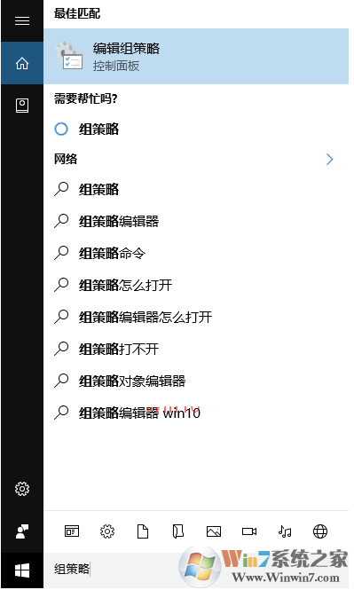 在Cortana搜索框中输入“组策略”,搜索结果中会显示“编辑组策略”。如图: