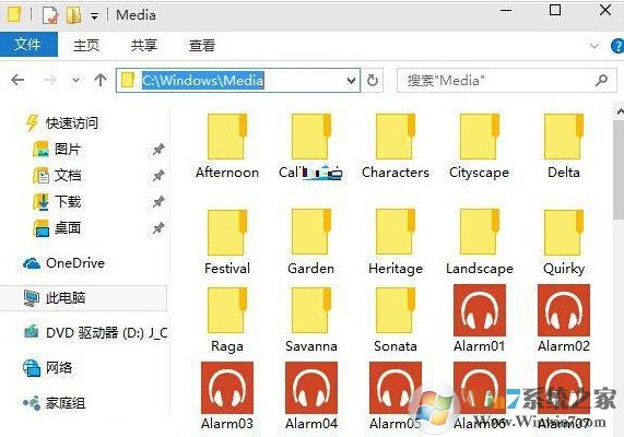 其实Win10系统和之前的系统,如Win7和Win8在这方面是一致的,这早就成为了一个不是秘密的秘密,系统声音文件默认保存在C:\Windows\Media文件夹下,不过之前系统声音,大多数是.wav格式,现在好像也支持.mid格式了。
