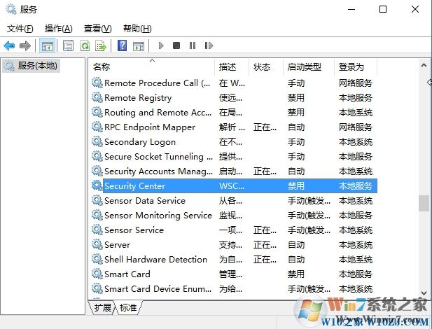 2、打开本地服务后,我们找到“Security Center ”服务;