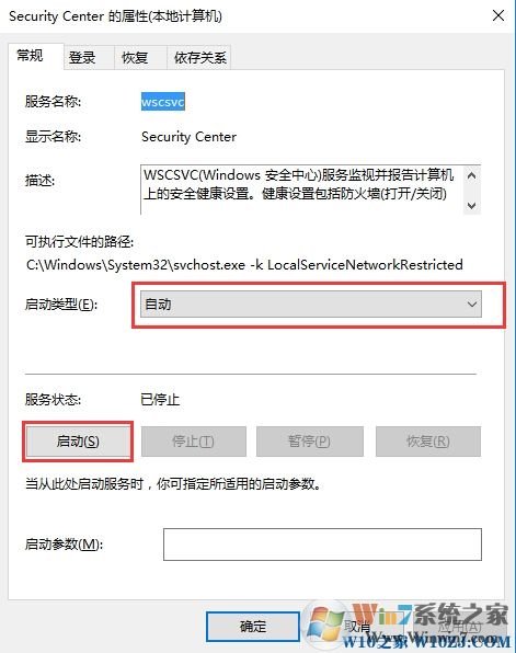 3、然后双击“Security Center ”服务,将启动类型更改为“自动”应用,然后启动服务;