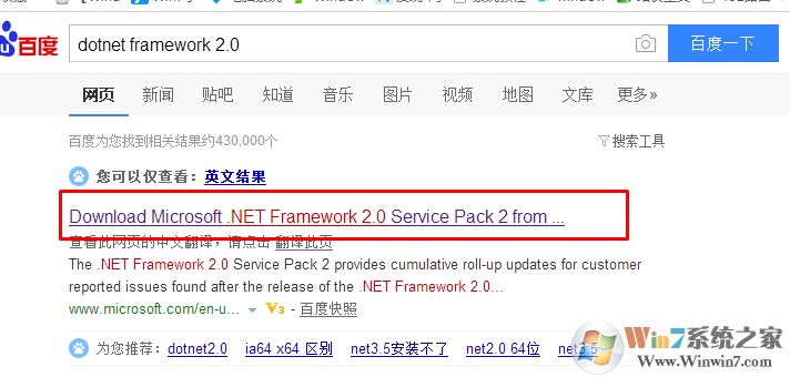 1、在百度搜索dotnet framework 2.0组件、百度会自动为你提供微软官方下载地址。