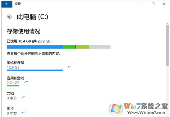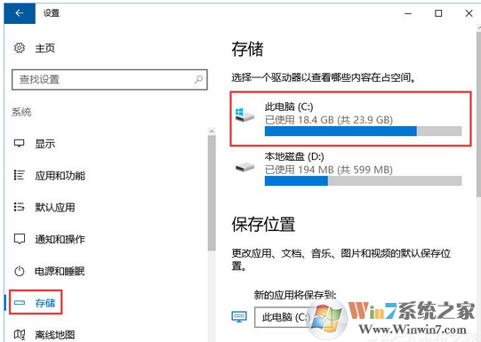 2、在左侧点击【存储】,在右侧点击当前的系统磁盘盘符;