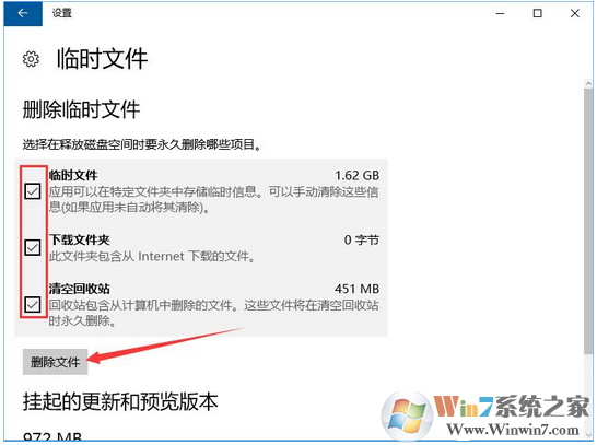 4、勾选所有选项(临时文件、下载文件夹等),然后点击【删除文件】;