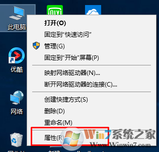 在桌面找到此电脑,然后右键选择属性。
