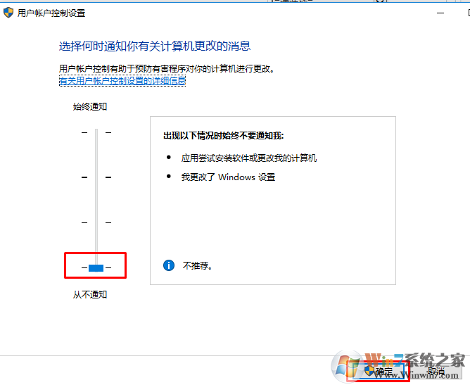 2、将安全级别设置为最低(即“从不通知”)即可。