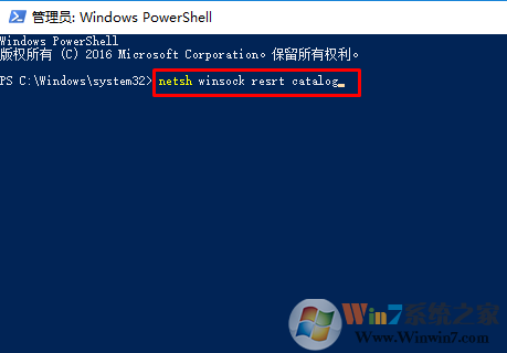 2、接着输入:netsh winsock reset catalog 按下回车键,完成命令后重启计算机即可成功启用sens服务!