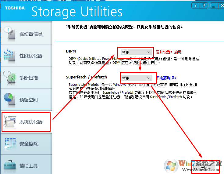 将系统优化器中的2项全部选为禁用,然后点击应用即可。