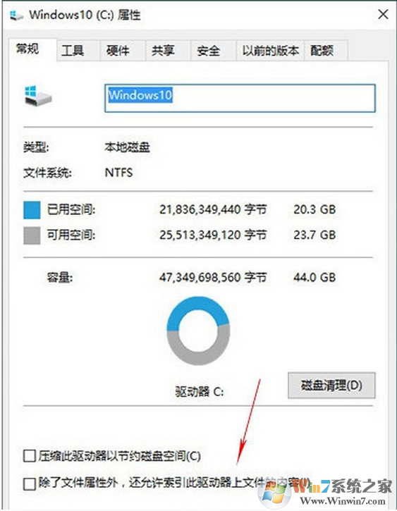接下来打开“此电脑”,右击磁盘属性,取消“除了文件属性外,还允许索引此驱动器上文件的内容”前面的复选框即可。每个盘需要重复这一步。