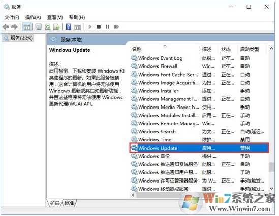 2、这时我们就打开了服务界面,我们以Windows Update服务为例,在服务界面找到该服务后双击打开;