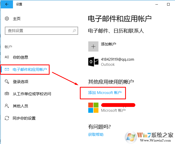 3、选择电子右键和应用账户---添加Microsoft 账户。