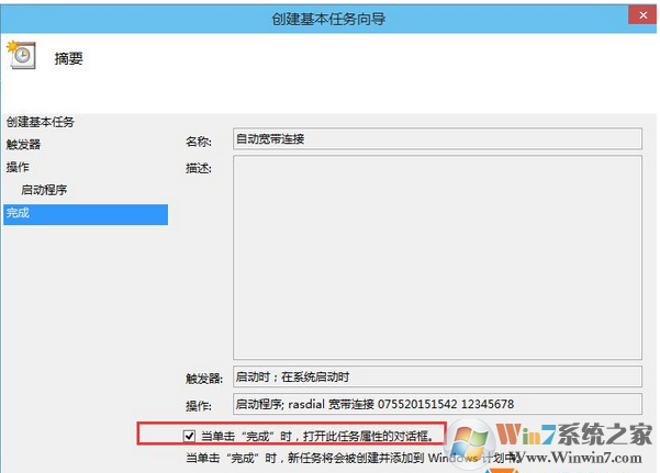 8、在接下来的界面,勾选“当完成时打开任务属性的对话框”选项,然后下一步;
