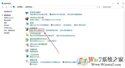 5、在系统和安全里面点击电源选项下面的唤醒计算机需要密码。