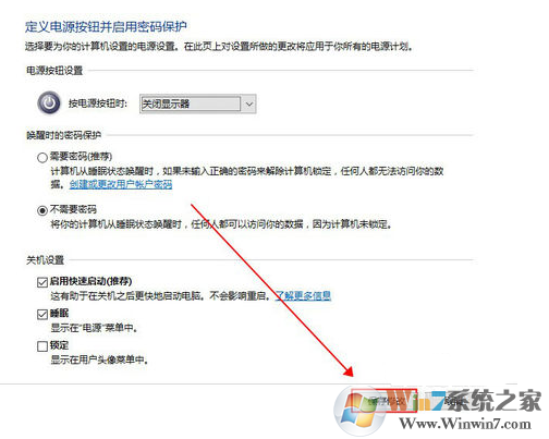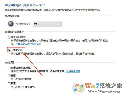 7、在唤醒时的密码保护的选项里选择不需要密码。