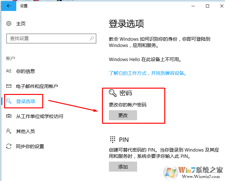 3、在登录选项中查看是否已经设置本地账户密码,如已未设置请设置本地账户密码。