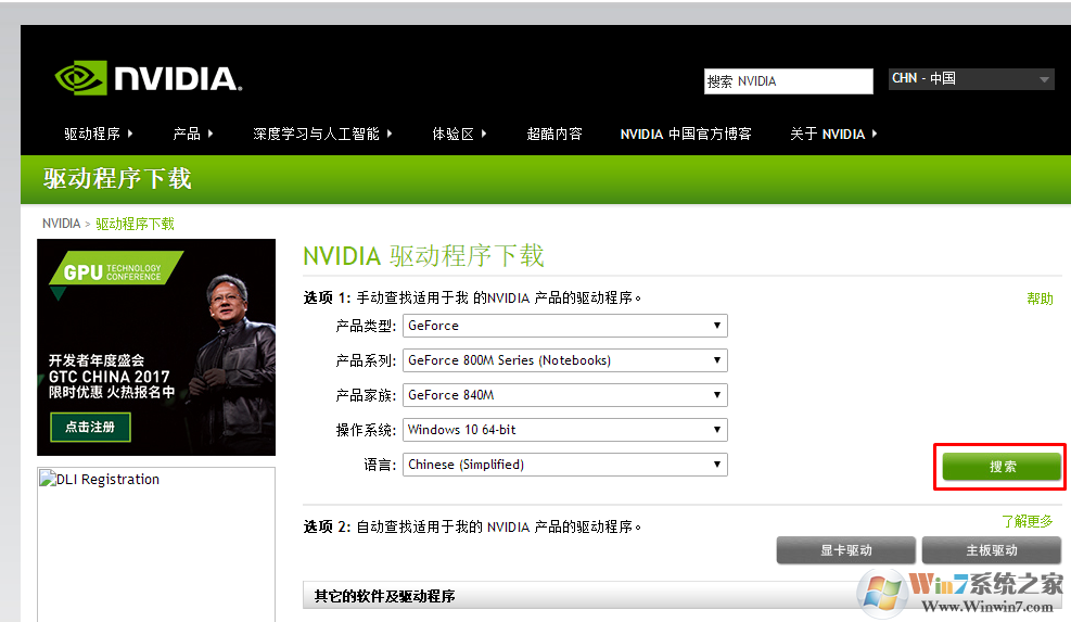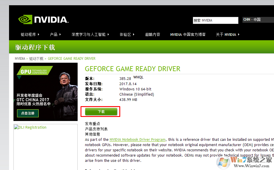 二、到英伟达官网下载相应型号的驱动程序,手动安装一遍。