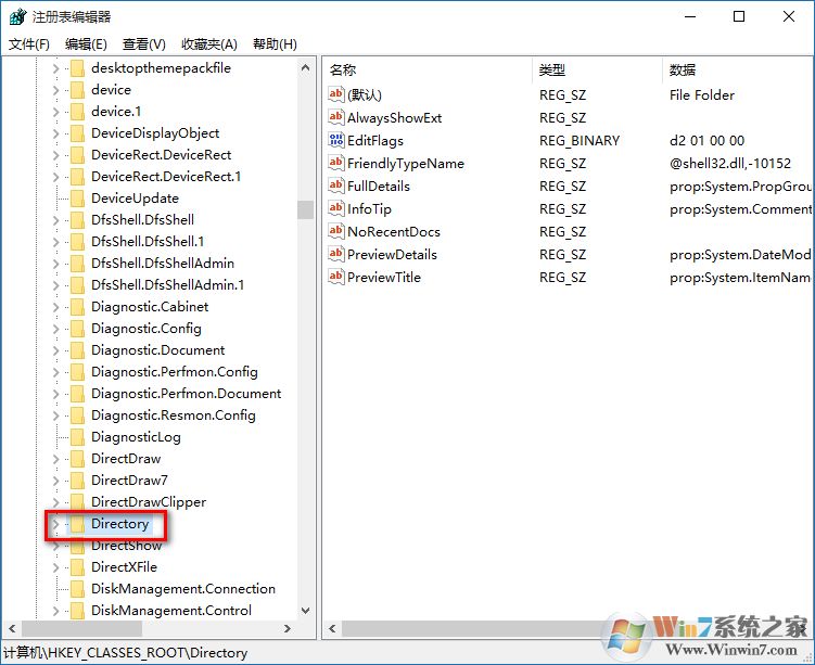 4、然后找到HKEY_CLASSES_ROOTDirectory