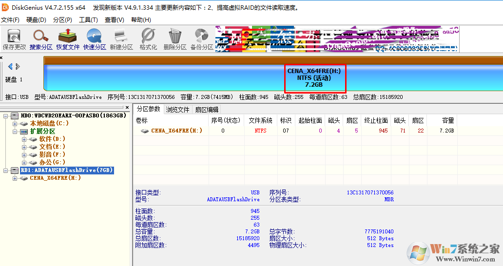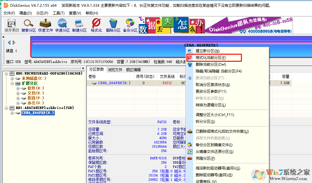 7、我们可以发现格式化之前是几个G,格式化之后还是几个G。非常的强大。