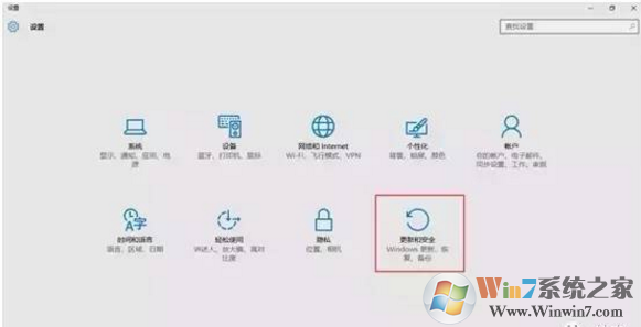 1、在“设置”中,选择“更新与安全”