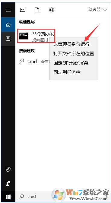 1、转到开始,键入cmd,选择命令提示符,然后以管理员身份运行。