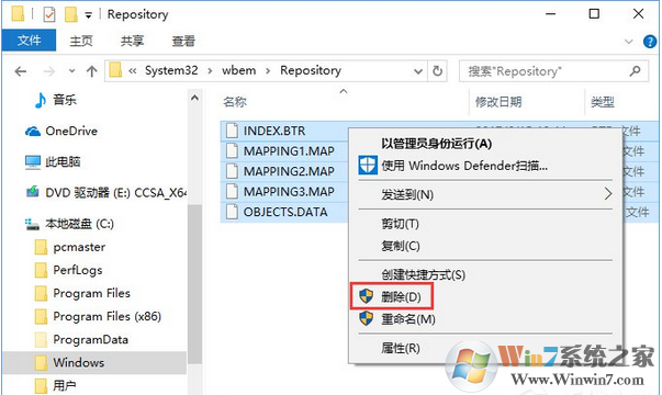 3、删除C:/Windows /System32/ wbem /Repository目录里的所有文件;