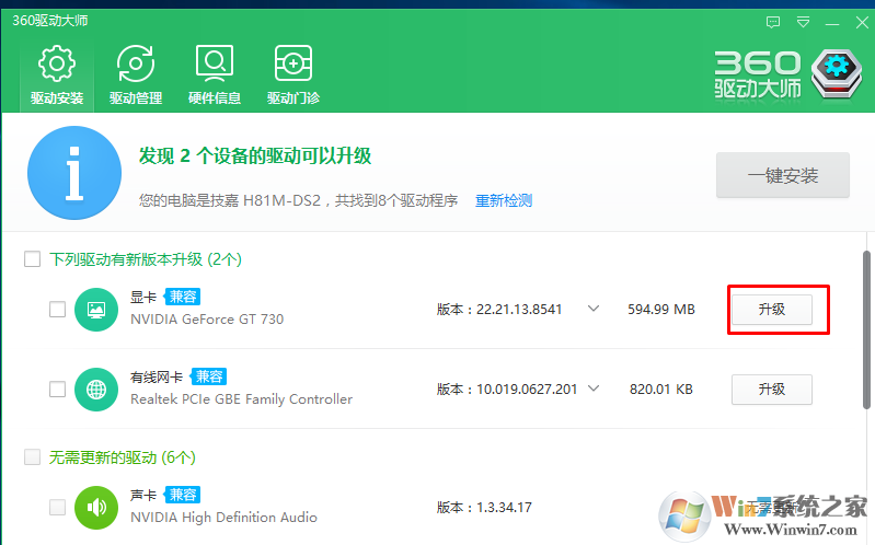 5、接下来安装独立显卡驱动即可(可以选择使用驱动精灵安装或者360驱动大师)。