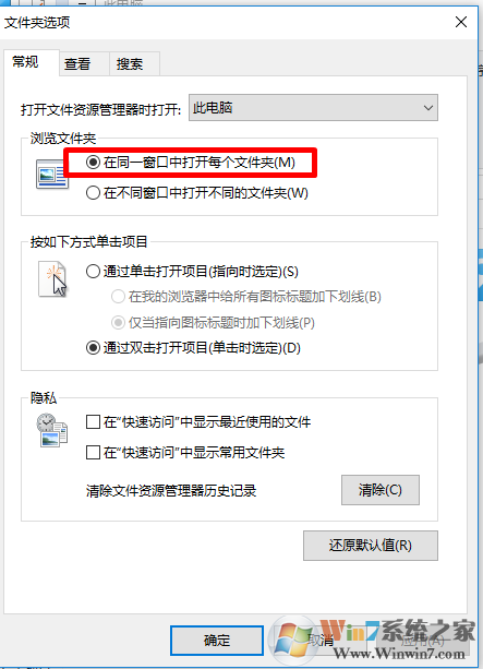 win10系统取消打开同个文件夹弹出新窗口的方法