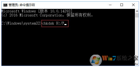4、chkdsk H:/F,(H:就是你的sd卡盘符,/F是修复参数。),当sd卡修复完成后,查看一下TF卡的属性,能显示容量就说明修复成功;