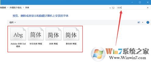 2、接着打开字体窗口,搜索“宋体”,然后全选搜索到的字体,将其复制到桌面上。