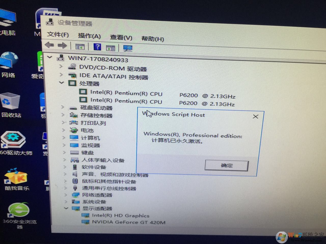 从上图我们可以看见一模一样的配置确认是小编的破电脑武义,连计算机名称都没有更改哦,是永久激活呢。
