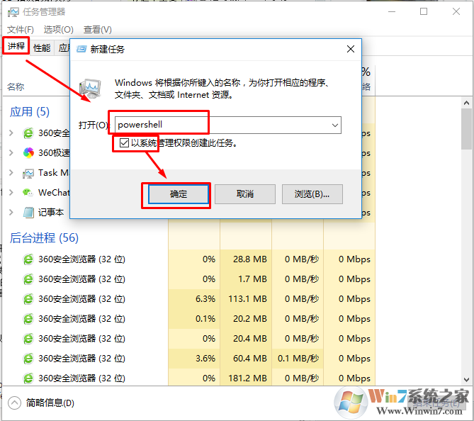 1. 任务管理器 新建任务 “powershell” 并以管理员身份运行;