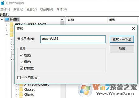 2、点击“编辑-查找”,搜索“enableULPS”,如图: